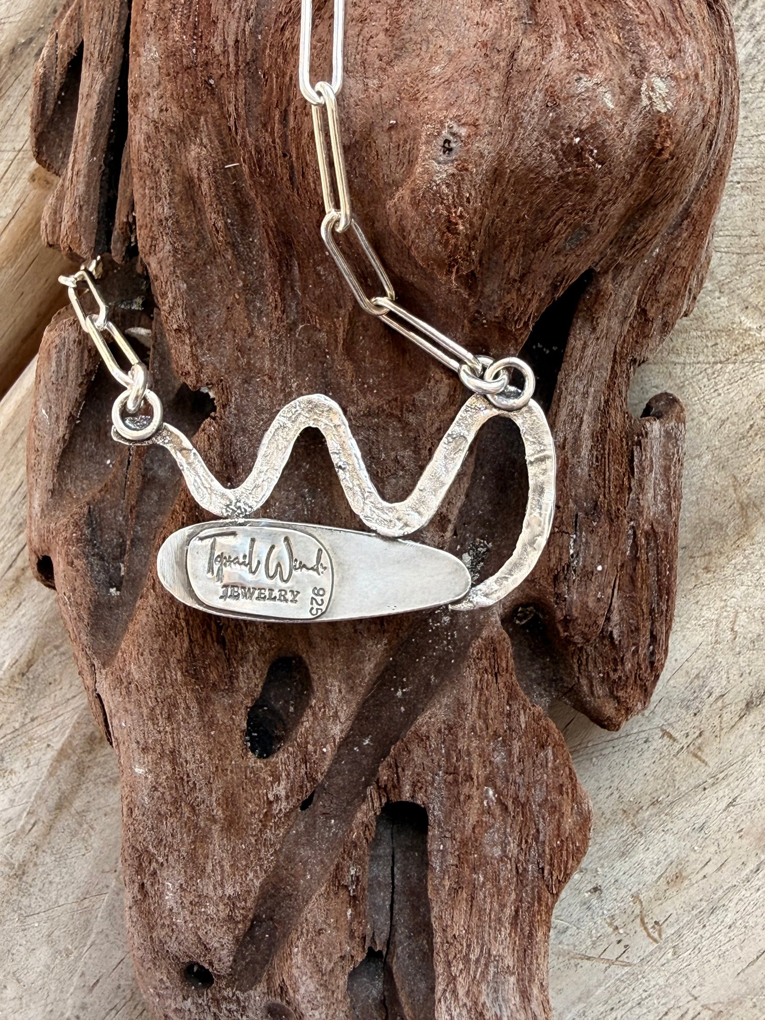 Morenci 2 turquoise with pyrite snake necklace that measures 19" long. This piece was handmade with both .925 sterling and .999 fine silver.